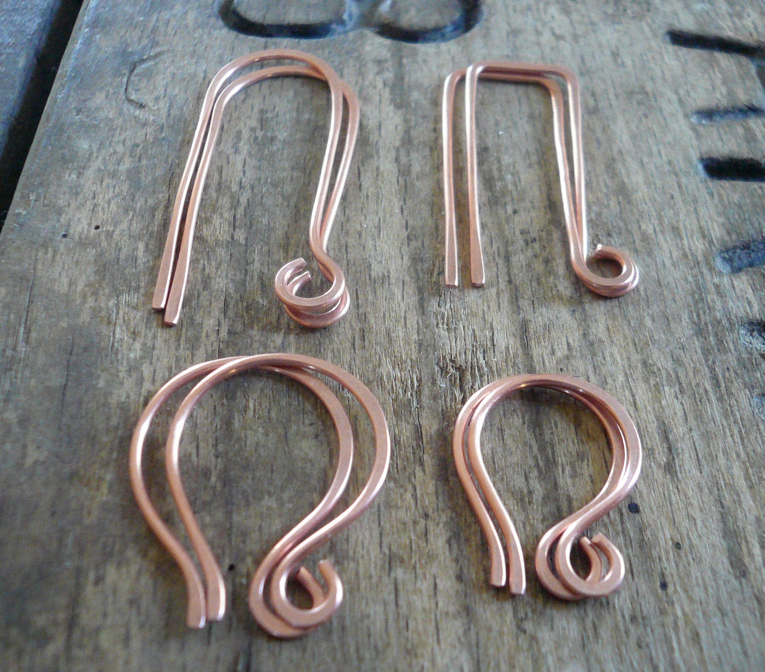 8 Pair Variety Pack Copper Earwires - Handmade. Handforged