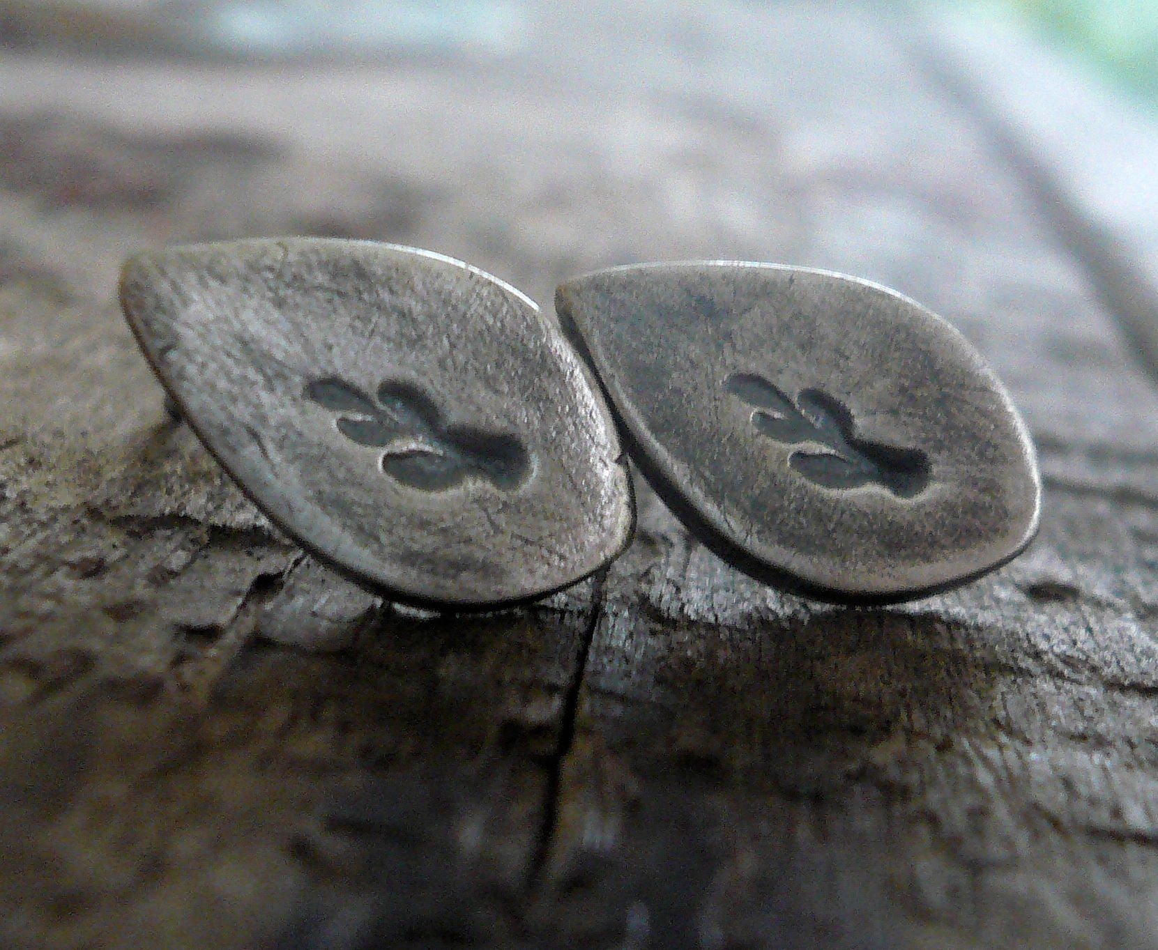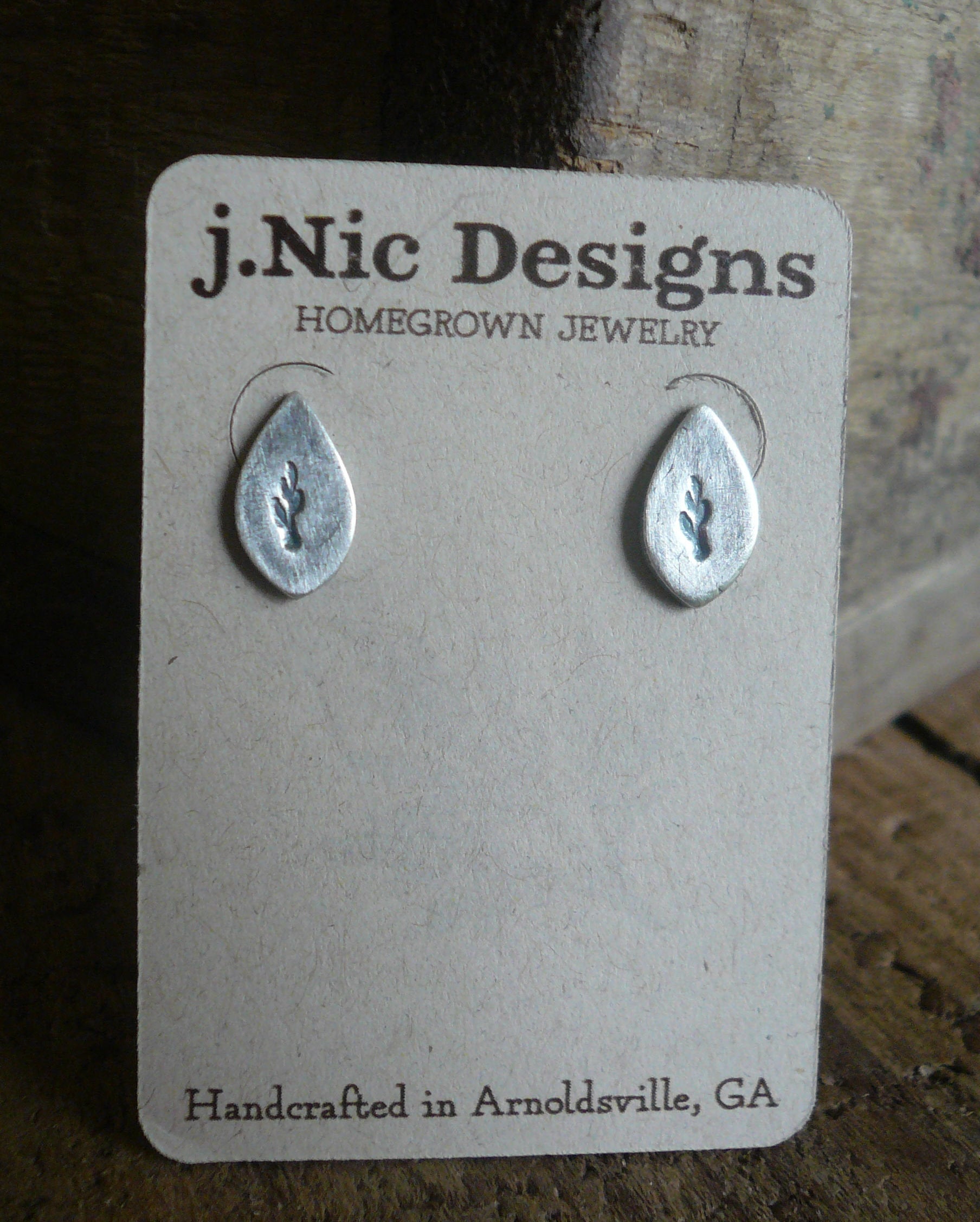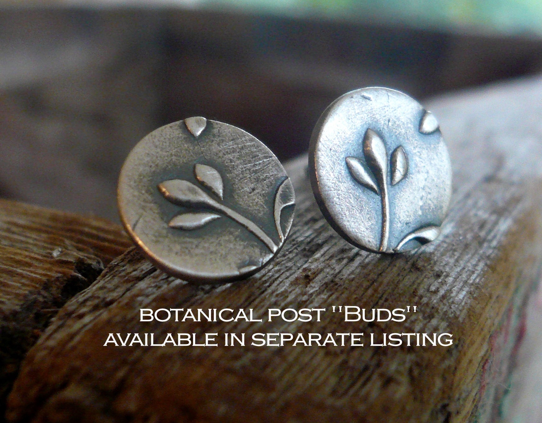 ~ 12mm little leaves that I have crafted by hand from recycled fine silver & imprinted with a little branch. Sterling silver posts & post backs (Please note the post backs are not oxidized).