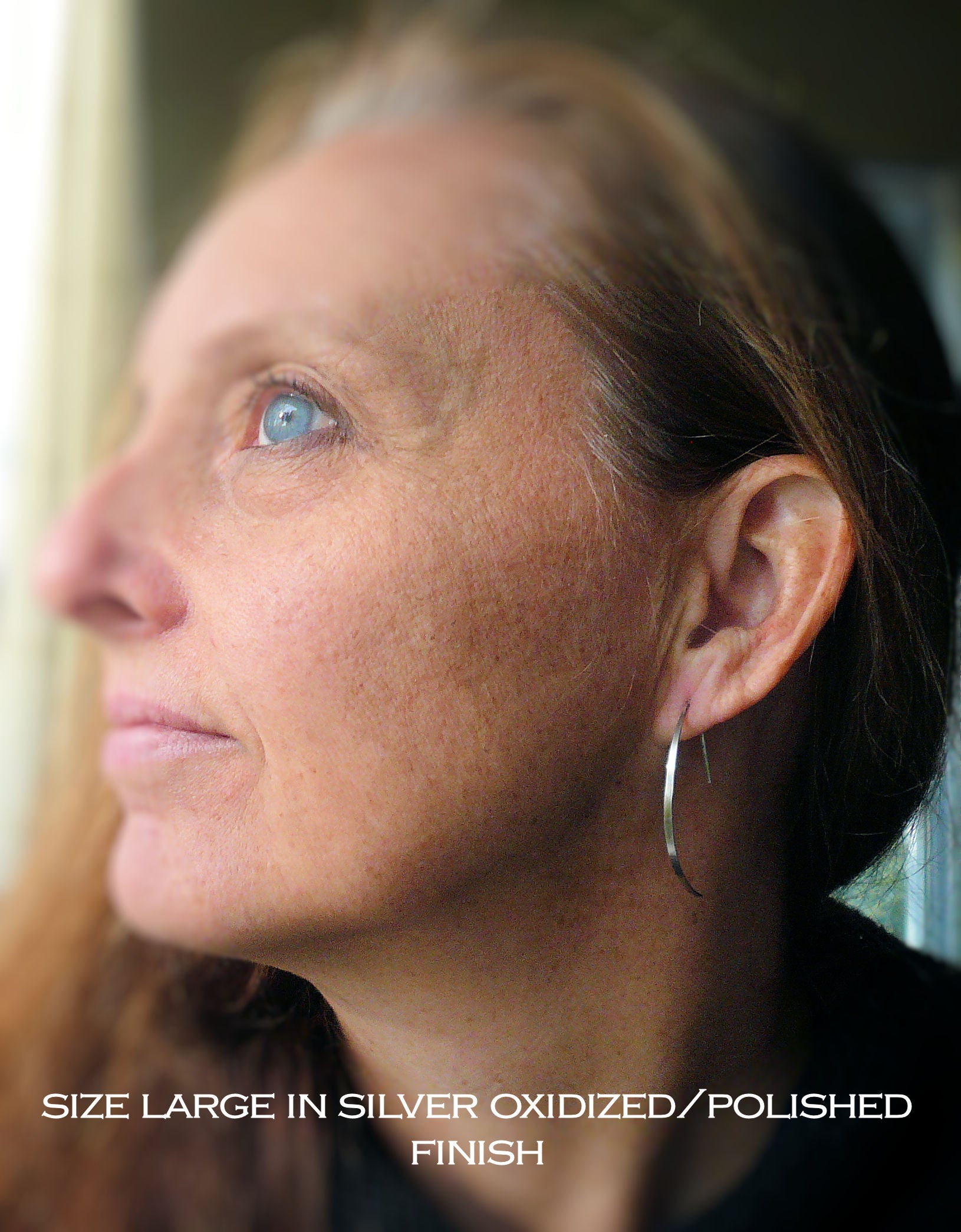DAILY DEAL Allure Open Hoops in Silver - Size Large. Oxidized/polished finish. Handmade in Sterling Silve