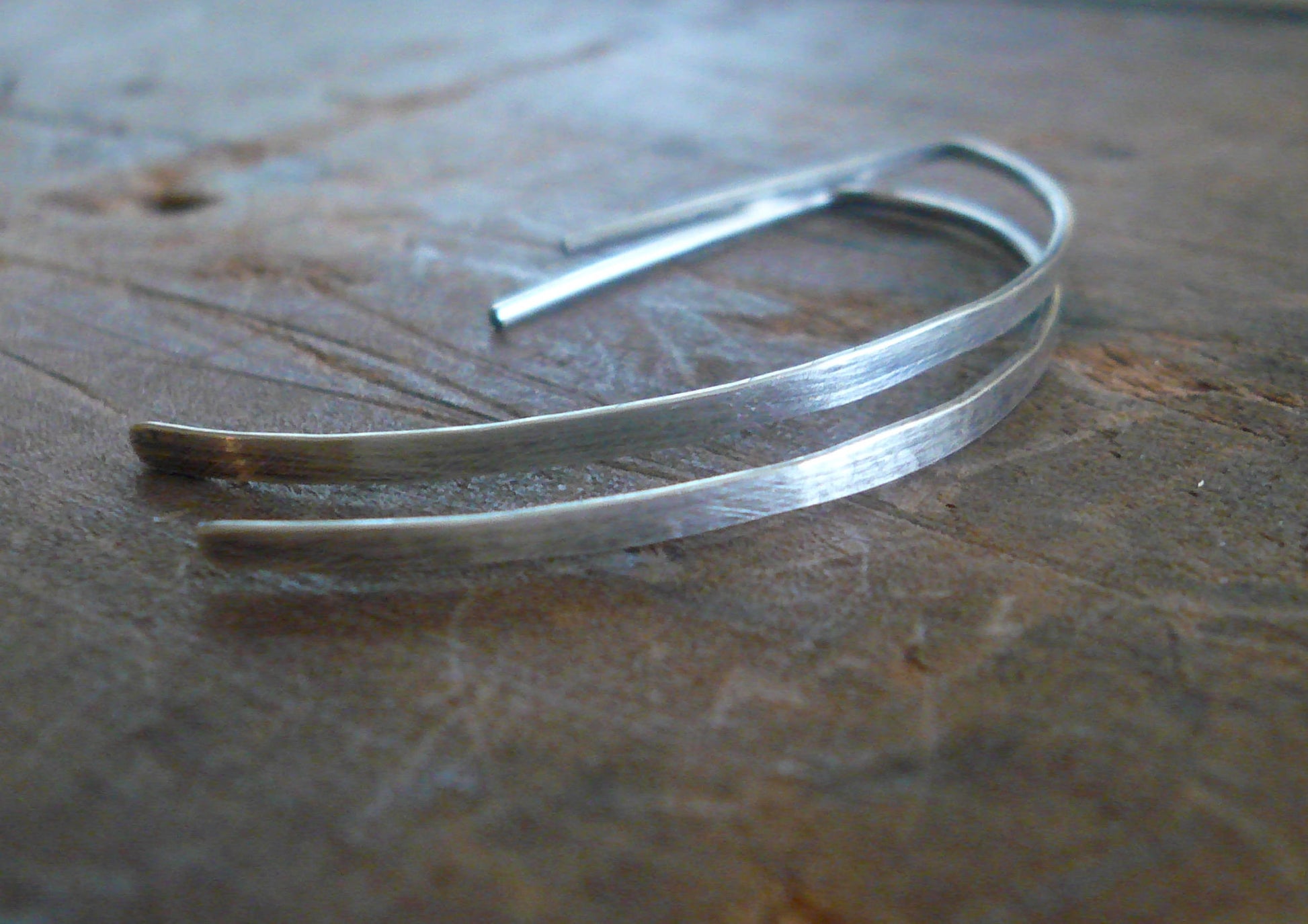 18 gauge sterling silver wire has been cut, filed, forged, hand formed and given the finish of your choice.