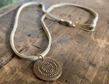 Mandala Necklace - Bronze & 14kt Goldfill. Leather. Handmade.