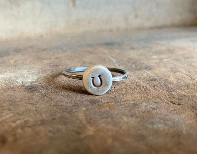 * My ~8mm hand crafted & stamped, recycled fine silver charm sits atop a hammered band constructed from heavy gauge sterling wire that has been hand formed, soldered & given a hammered texture.