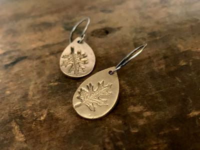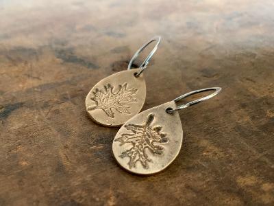 "Fall" Golden bronze oak leaves gracefully fall from hand wrought earwires...