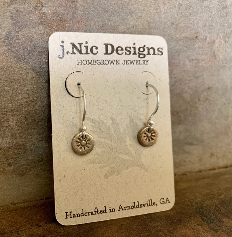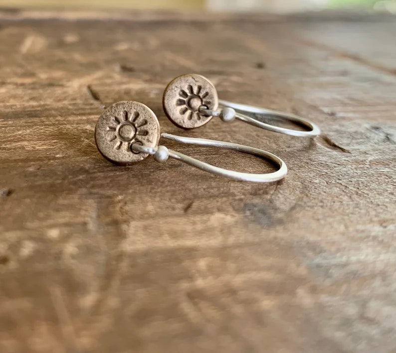 "Lil' Sunshine" Petite little suns to brighten up your lobes! Available in all fine silver or a mix metal version with bronze & fine silver.