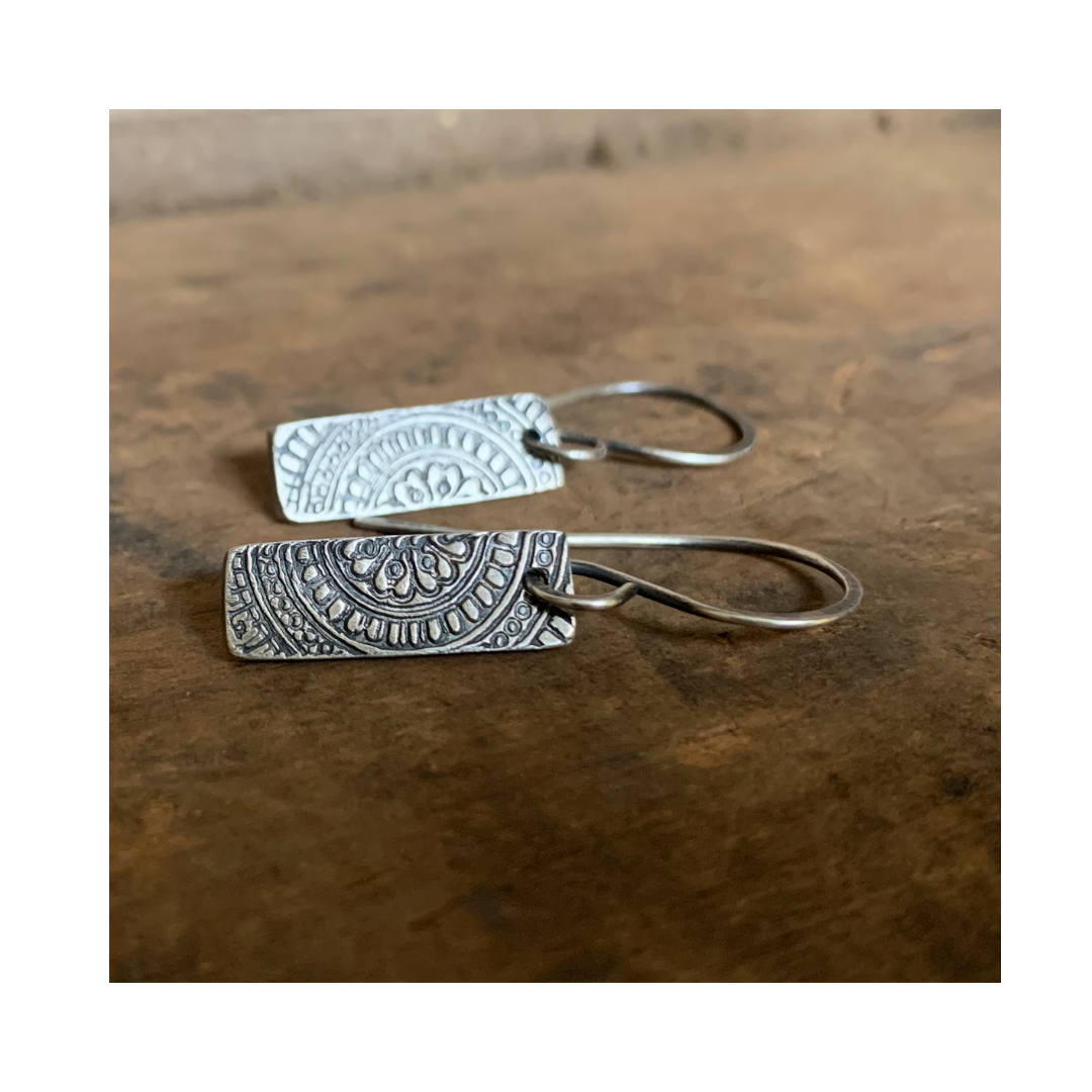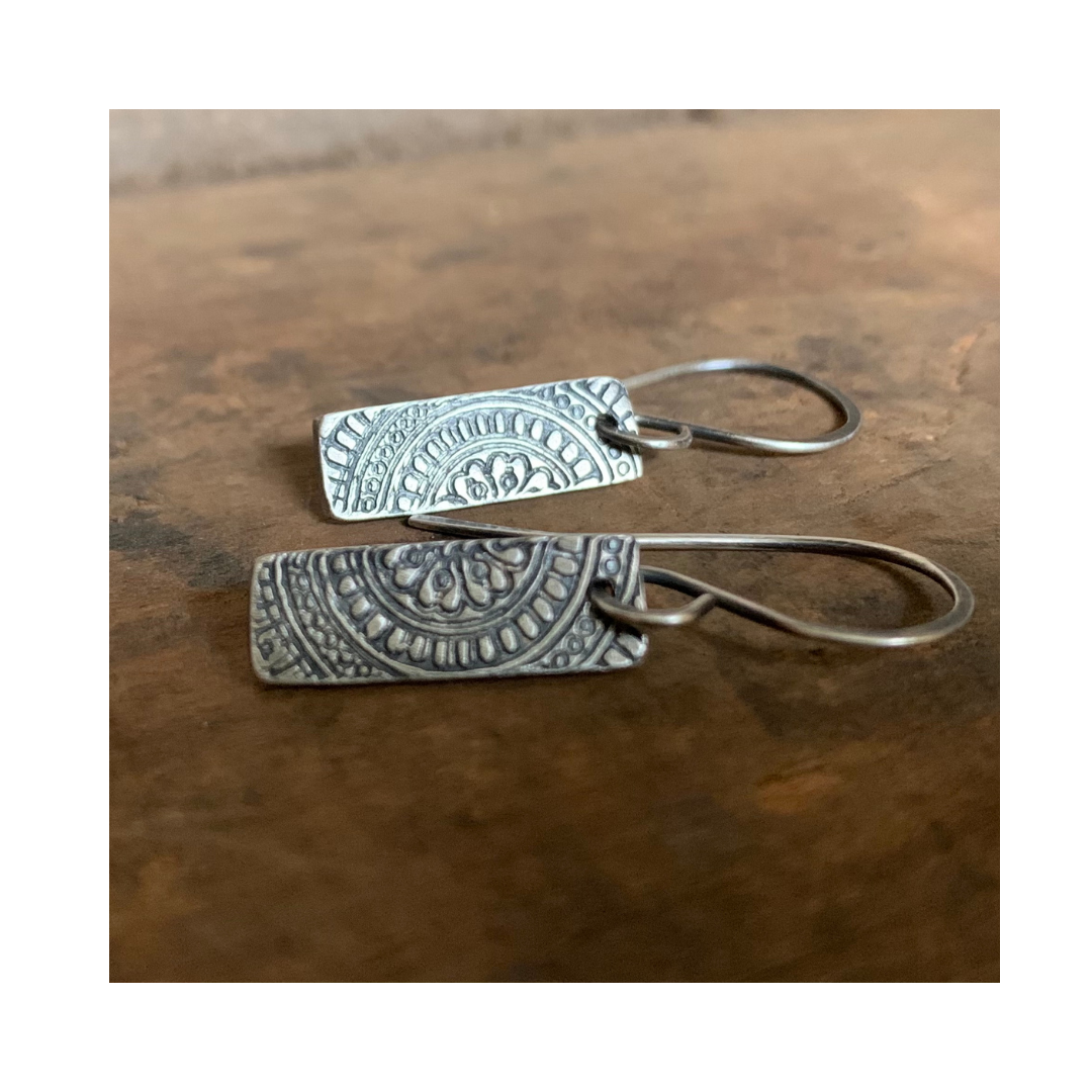 Mandala Tab Earrings - Handmade. Fine and Sterling Silver dangle earrings.