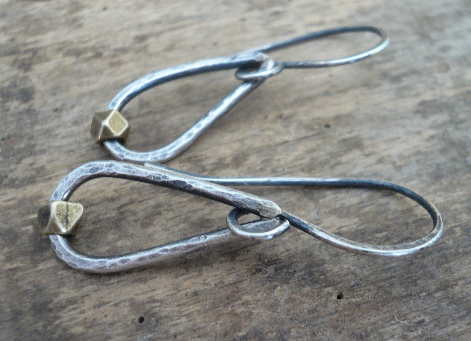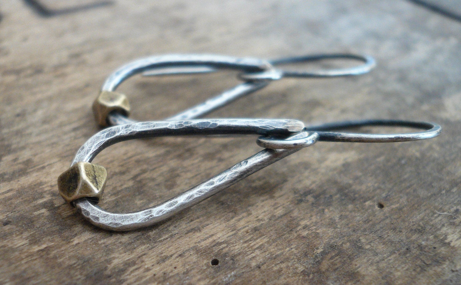 Cosset Earrings - Handmade. Brass. Oxidized, Hammered Sterling Silver Dangle Earrings
