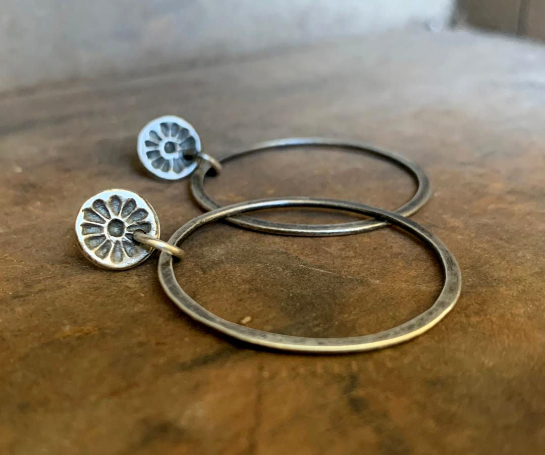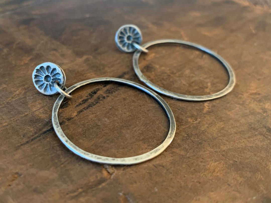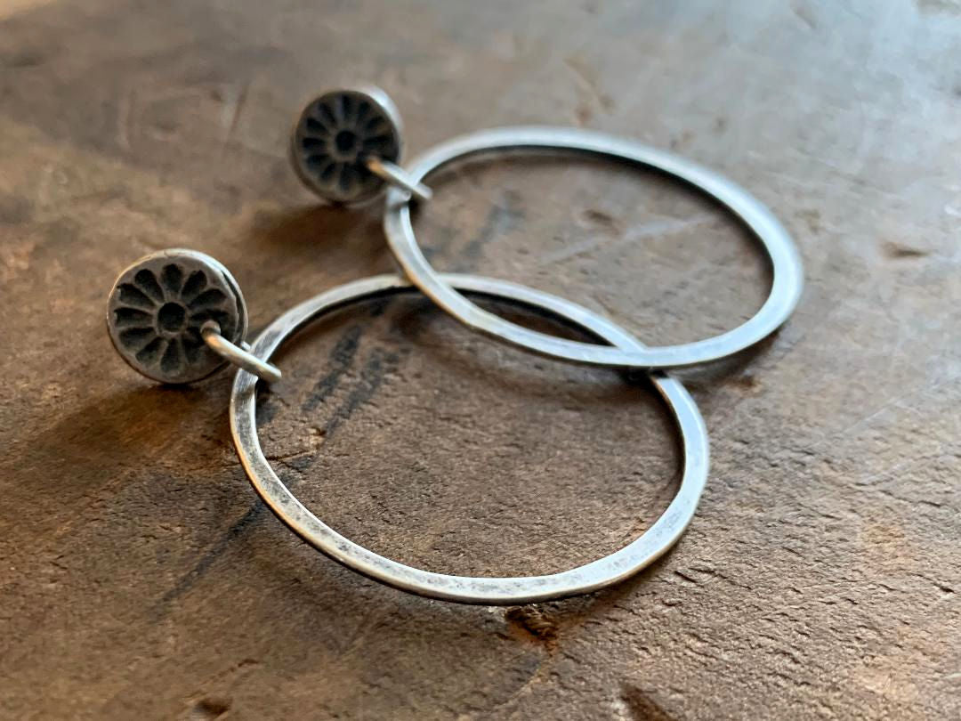 * 1 1/4" loops of hand forged, heavy gauge sterling silver.