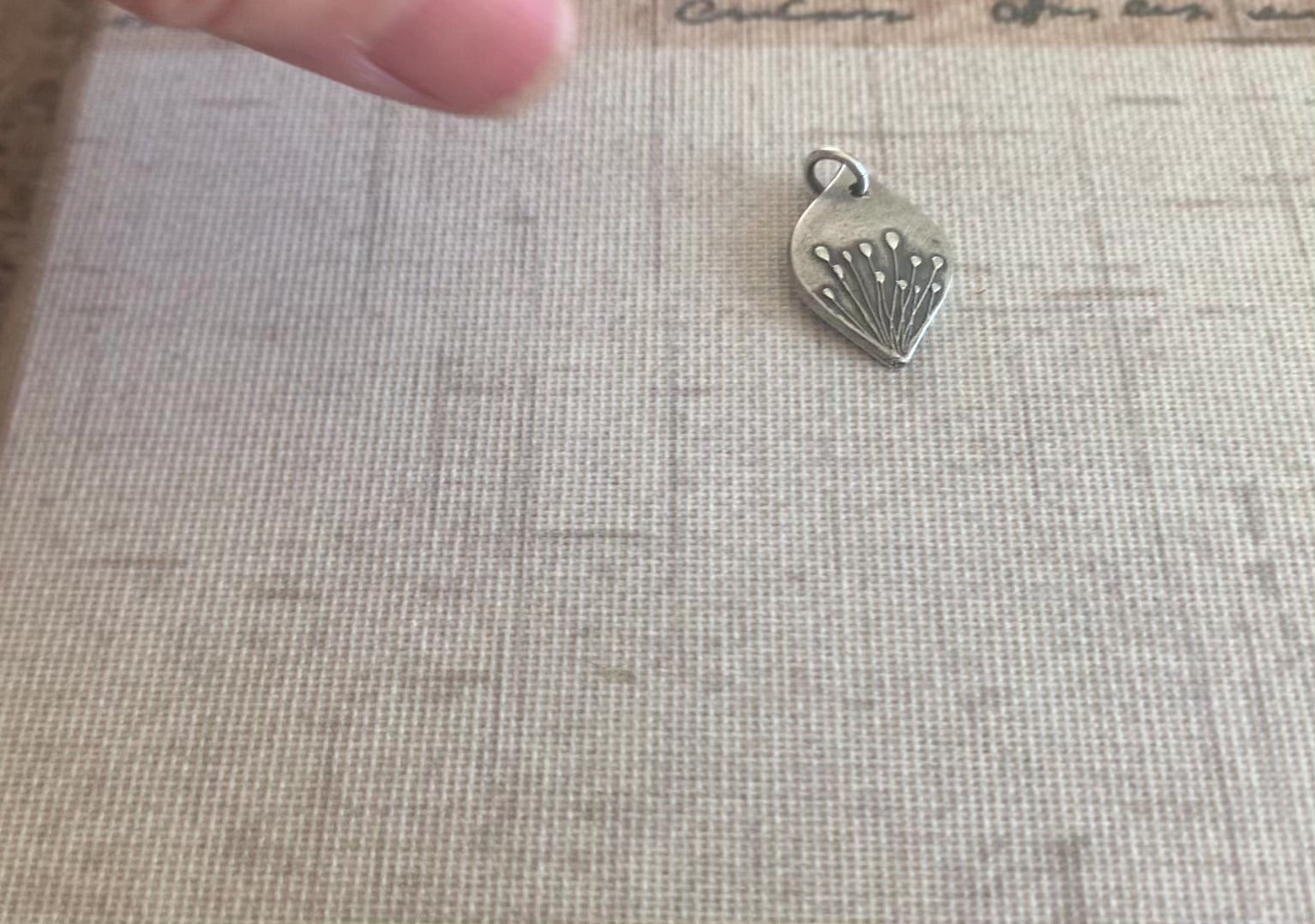 🧰 ~21mm long by ~14mm wide hand cut pod of recycled fine silver (99% pure silver/sterling is 92.5% silver) crafted by hand by me and imprinted with wispy little weeds.