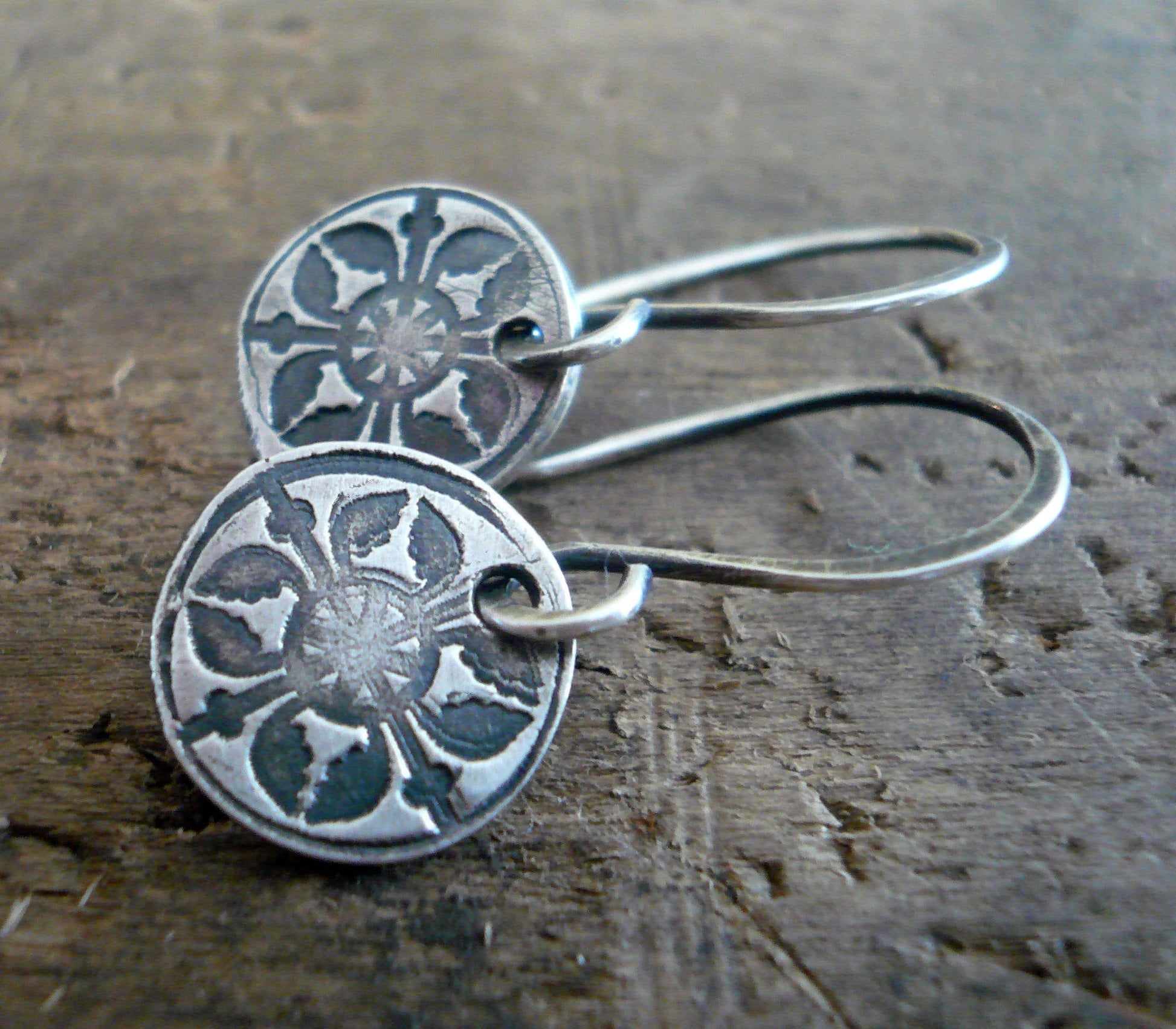 French Quarter Earrings - Round - Oxidized fine & sterling silver. Handmade