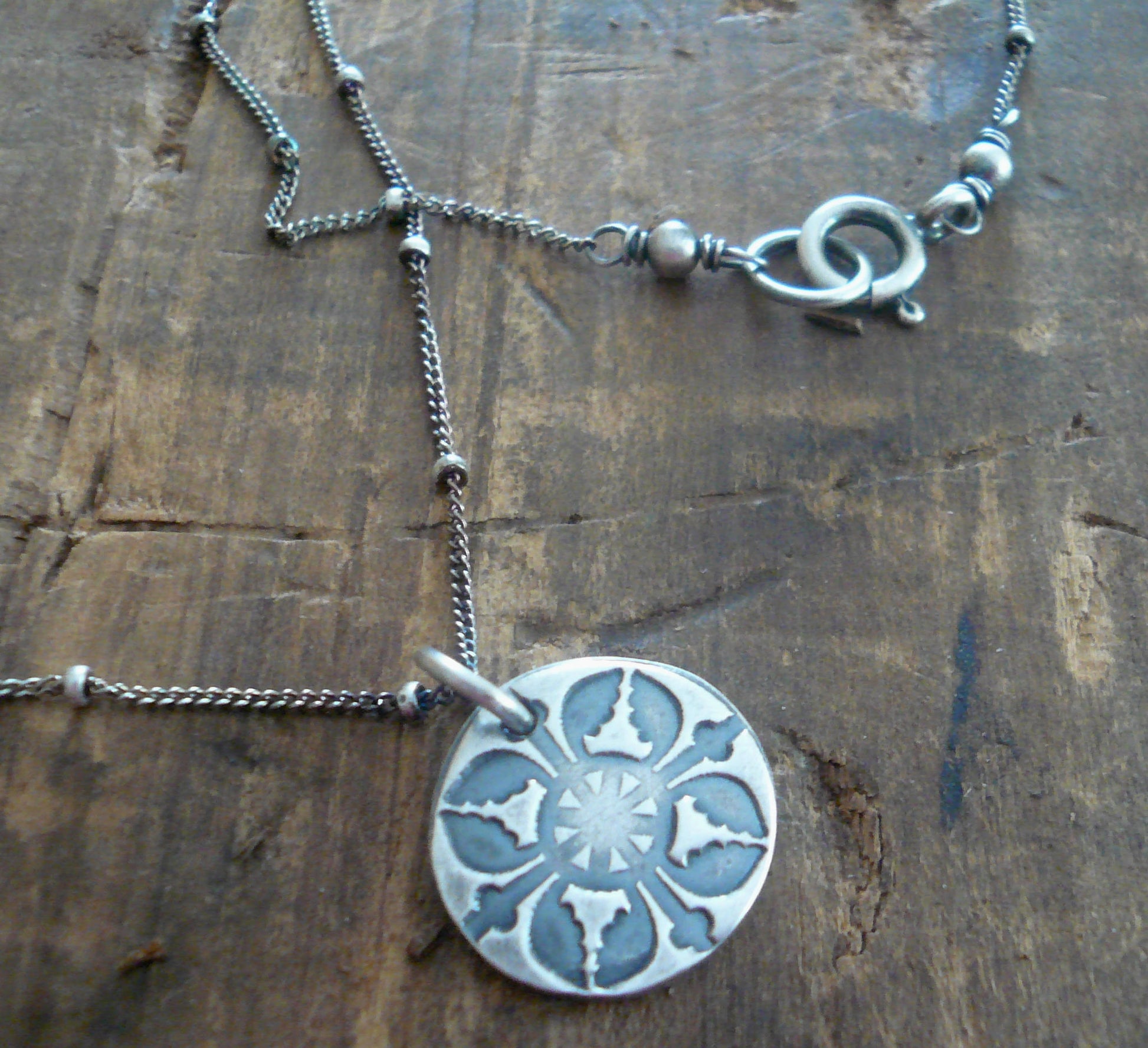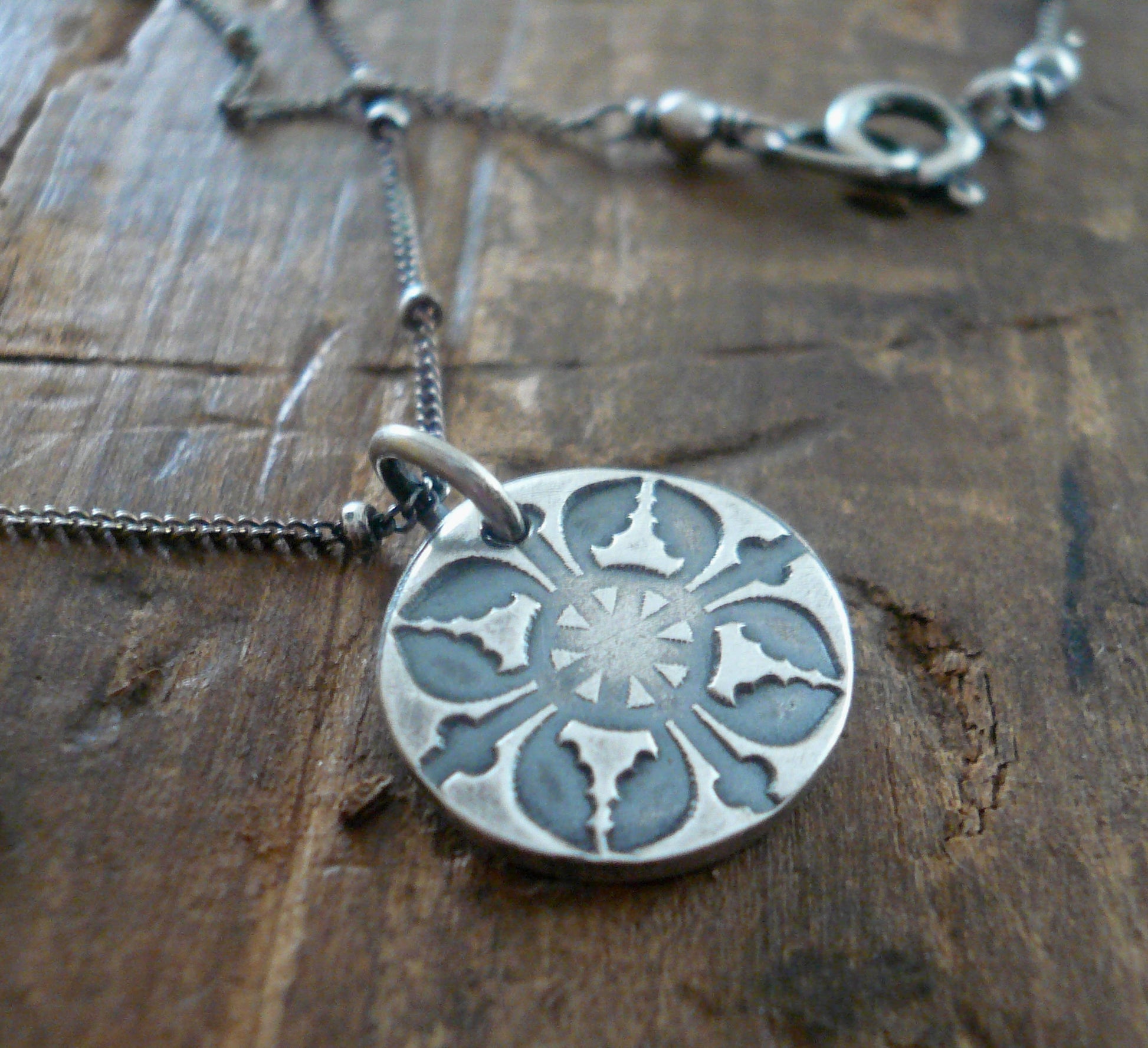 French Quarter Necklace -Round - Oxidized fine and Sterling Silver or 14kt Goldfill. Handmade