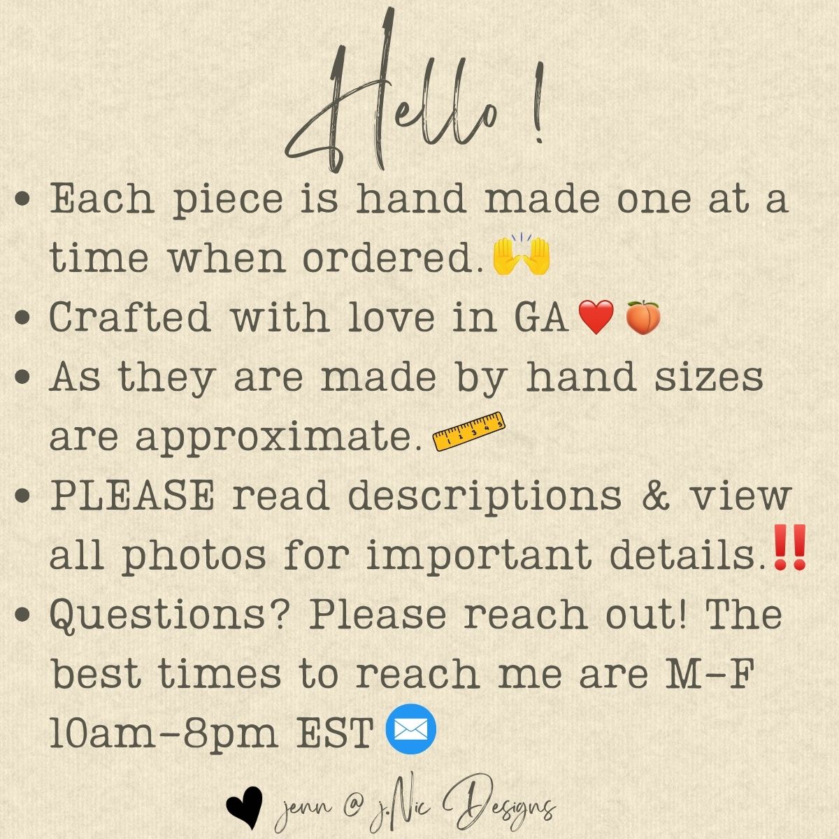 * As this piece is made to order please allow 7-10 business days for orders with standard shipping to ship. Rush shipping options are available.