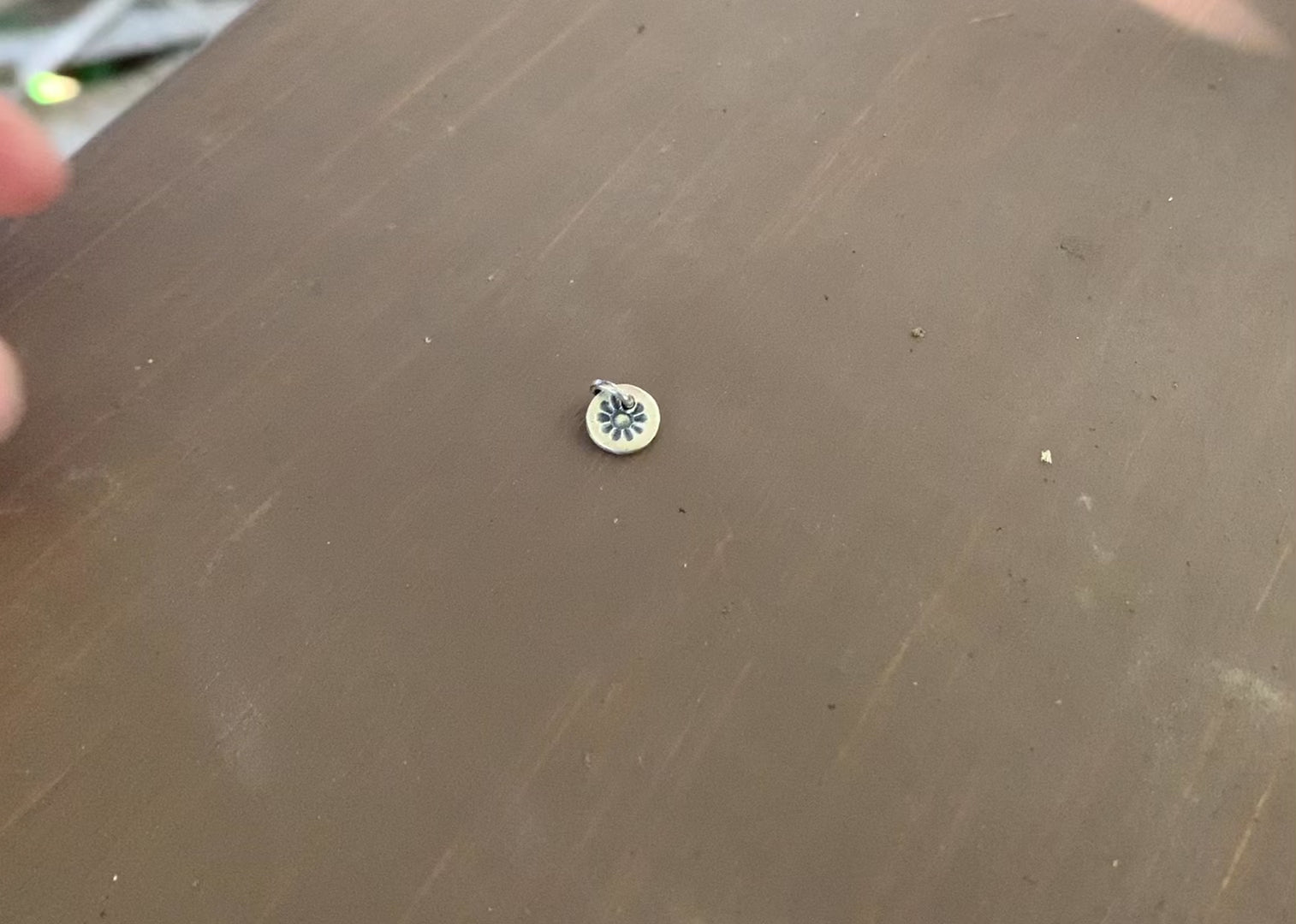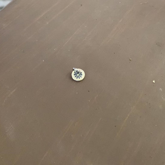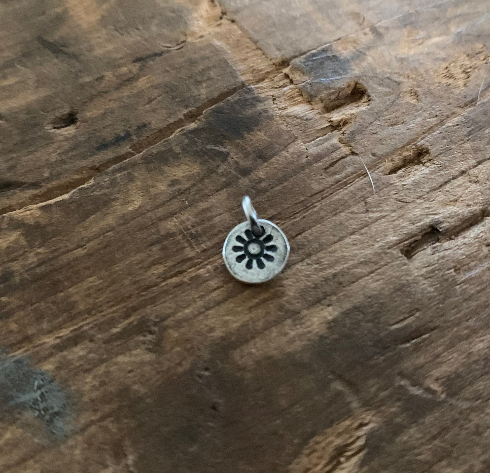 ~8mm fine recycled silver pendant charm completely fabricated by hand by me & imprinted with a little sun design. (Fine silver is 99.9% pure silver/ sterling is 92.5% silver w/ the other 7.5% being another metal alloy such as copper)