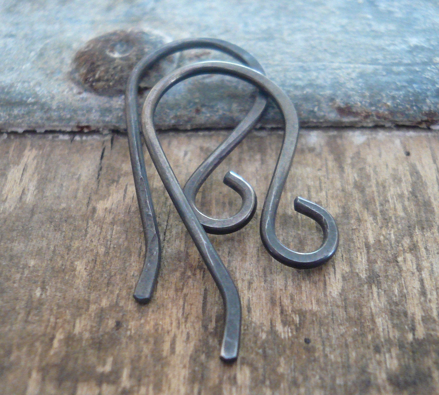 Heavy Gauge Solitaire Sterling Silver Earwires - Heavily oxidized. Handmade. Hand forged