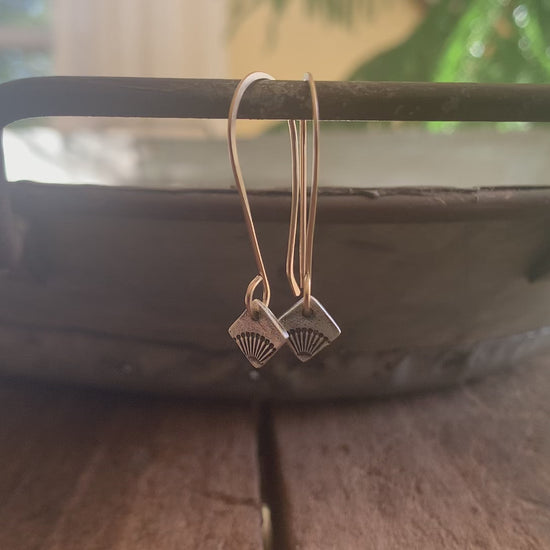 "Horizon" Earrings - My hand crafted diamond charms of fine recycled silver are adorned with a radiant design & complimented with sunny golden earwires .. a sister design to my Daybreak earrings.