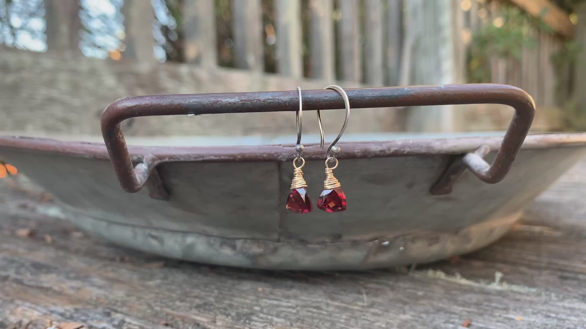 BACK IN STOCK January Earrings - Handmade. Garnet. Mixed Metals. Oxidized Fine silver & 14 kt Goldfill dangle birthstone Earrings