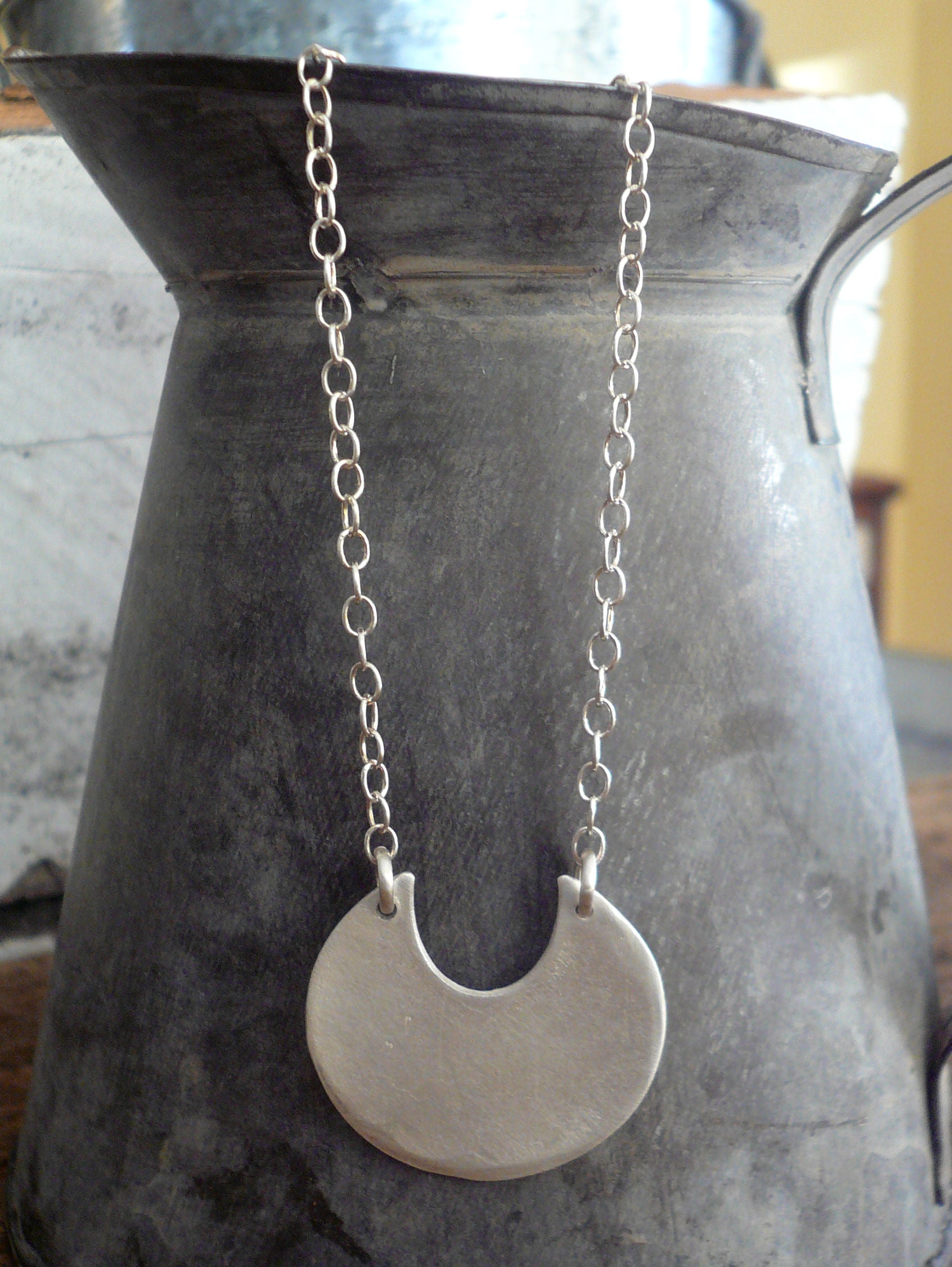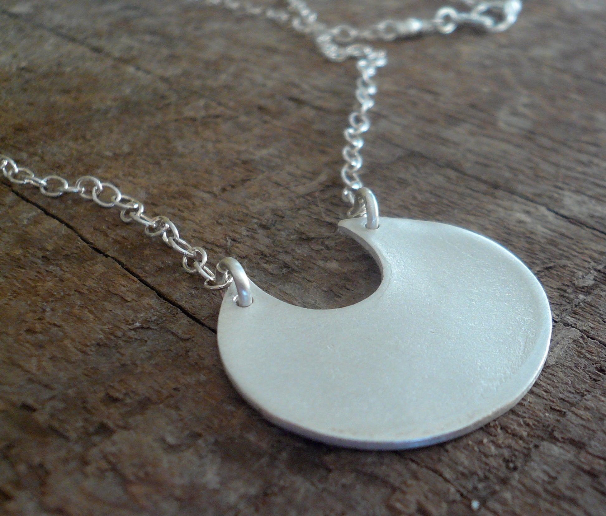 Lacuna Collection Necklace - Handmade. Brushed Fine Silver Pendant Necklace
