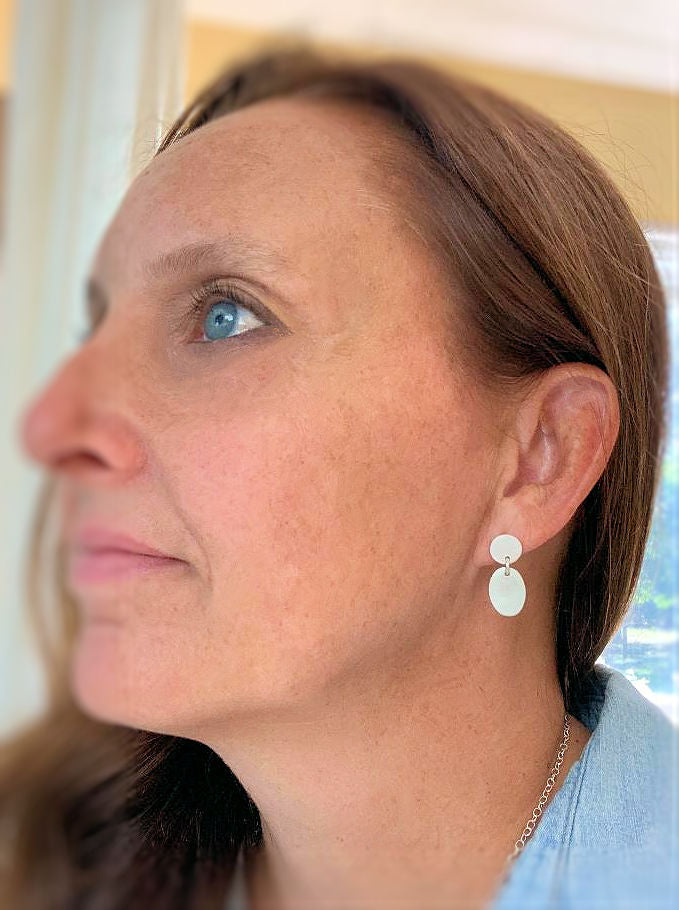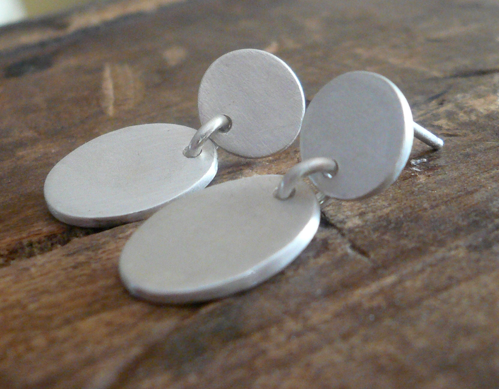 ~8mm rounds dangle ~14mm ovals both crafted from recycled fine silver (99% pure silver/sterling is 92.5% silver) crafted by hand by me. As I construct each one entirely by hand sizes are approximate.