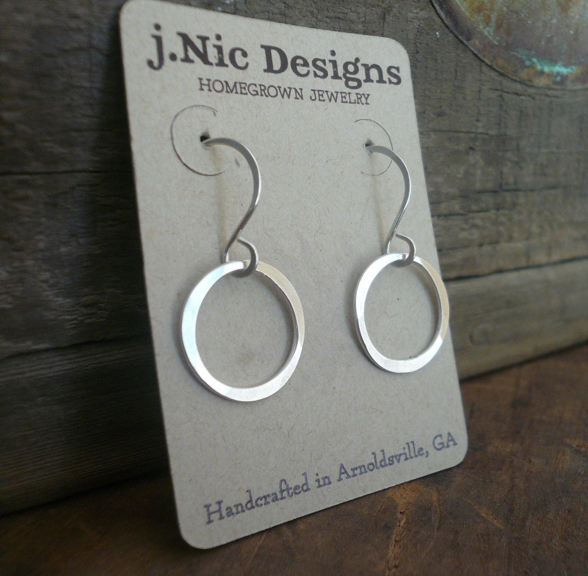 * ~17mm (5/8") loops of heavy gauge sterling that I have intentionally unevenly forged are swaying from my hand crafted sterling silver earwires.