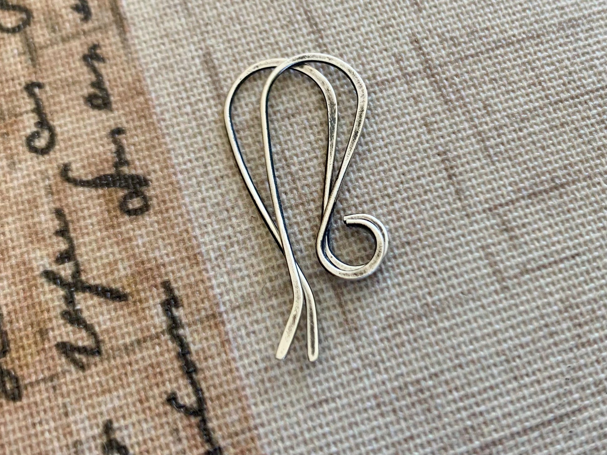 Description: Sterling silver (.925) hand formed earwires in an oxidized & polished finish (also available in shiny -shown is size reference photo & heavily oxidized finishes in separate listings)