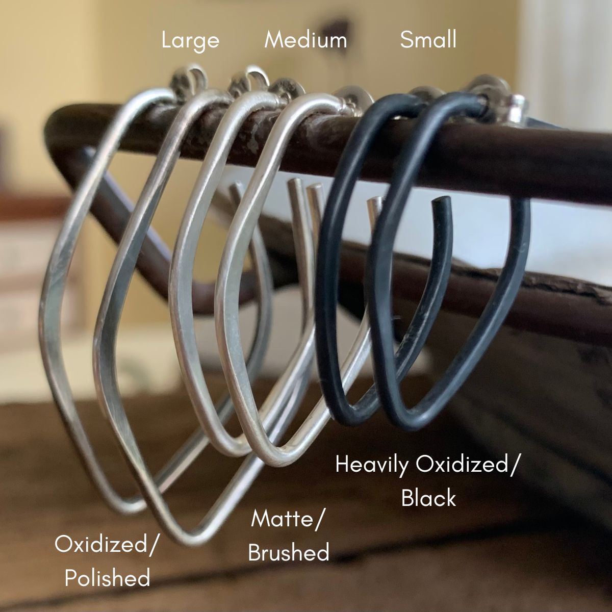 Lotus Hoops - Thick Gauge Sterling Silver Post Hoops. Handmade. Hammered. Light Weight Hoops