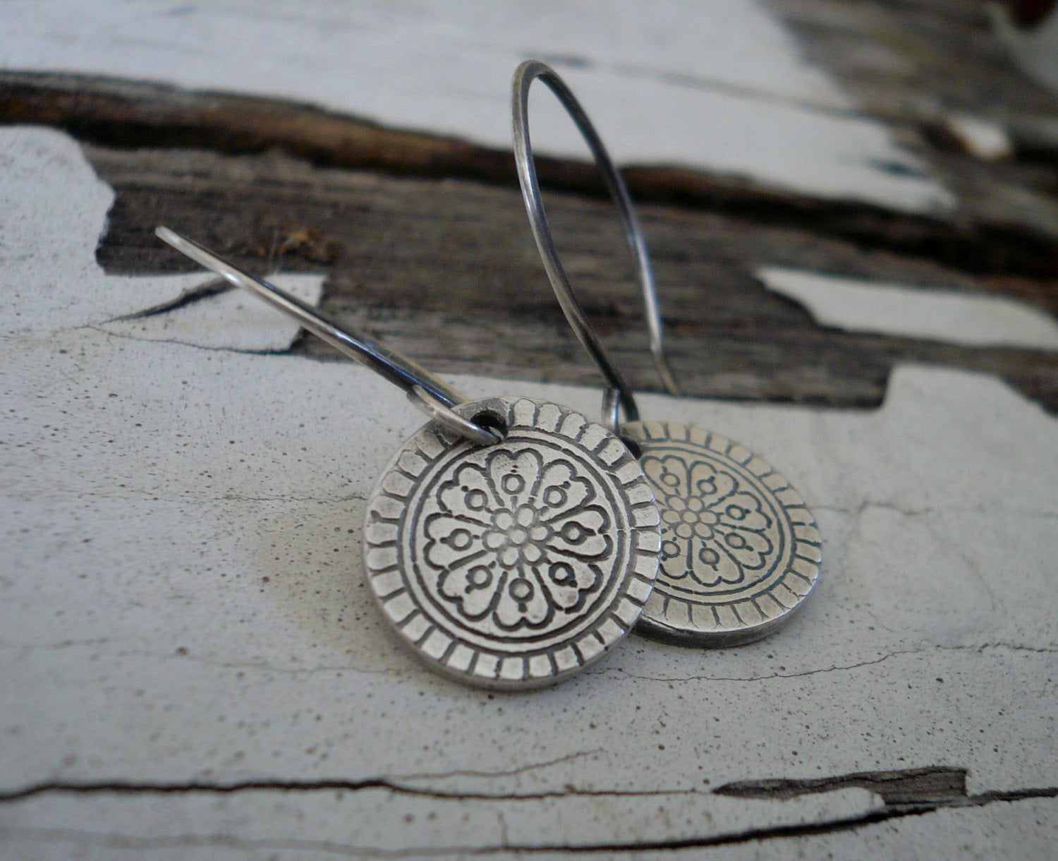 Mandala Earrings - Handmade. Oxidized fine and sterling silver