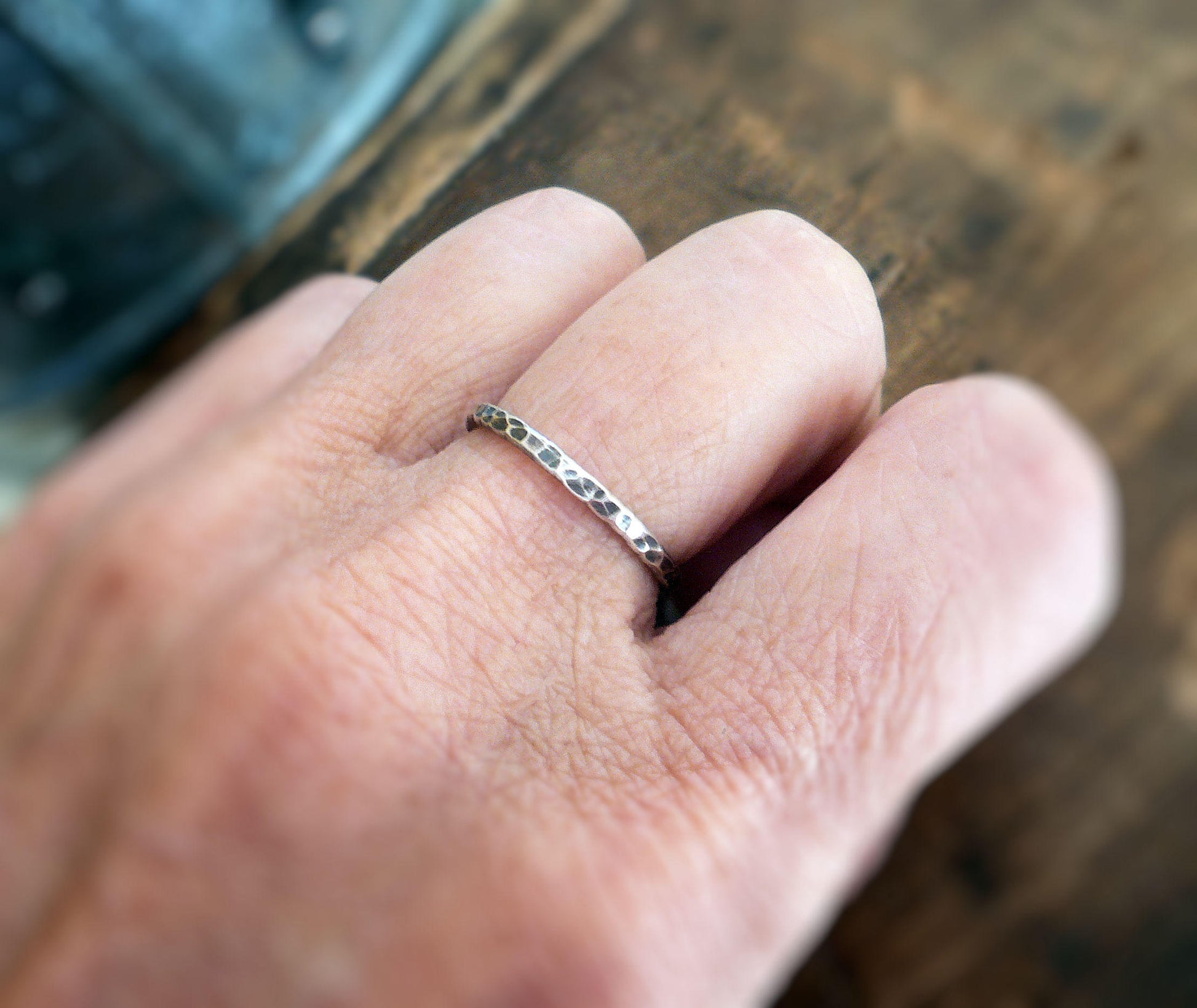 Mangly Ring - Sterling Silver Oxidized Hammered Stacking Ring. Hand made by jNic Designs
