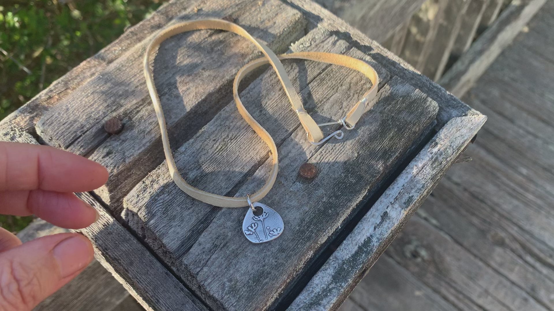 Farmer's Daughter Necklace - Fine & Sterling Silver. Leather. Handmade. Tear Drop Botanical Pendant