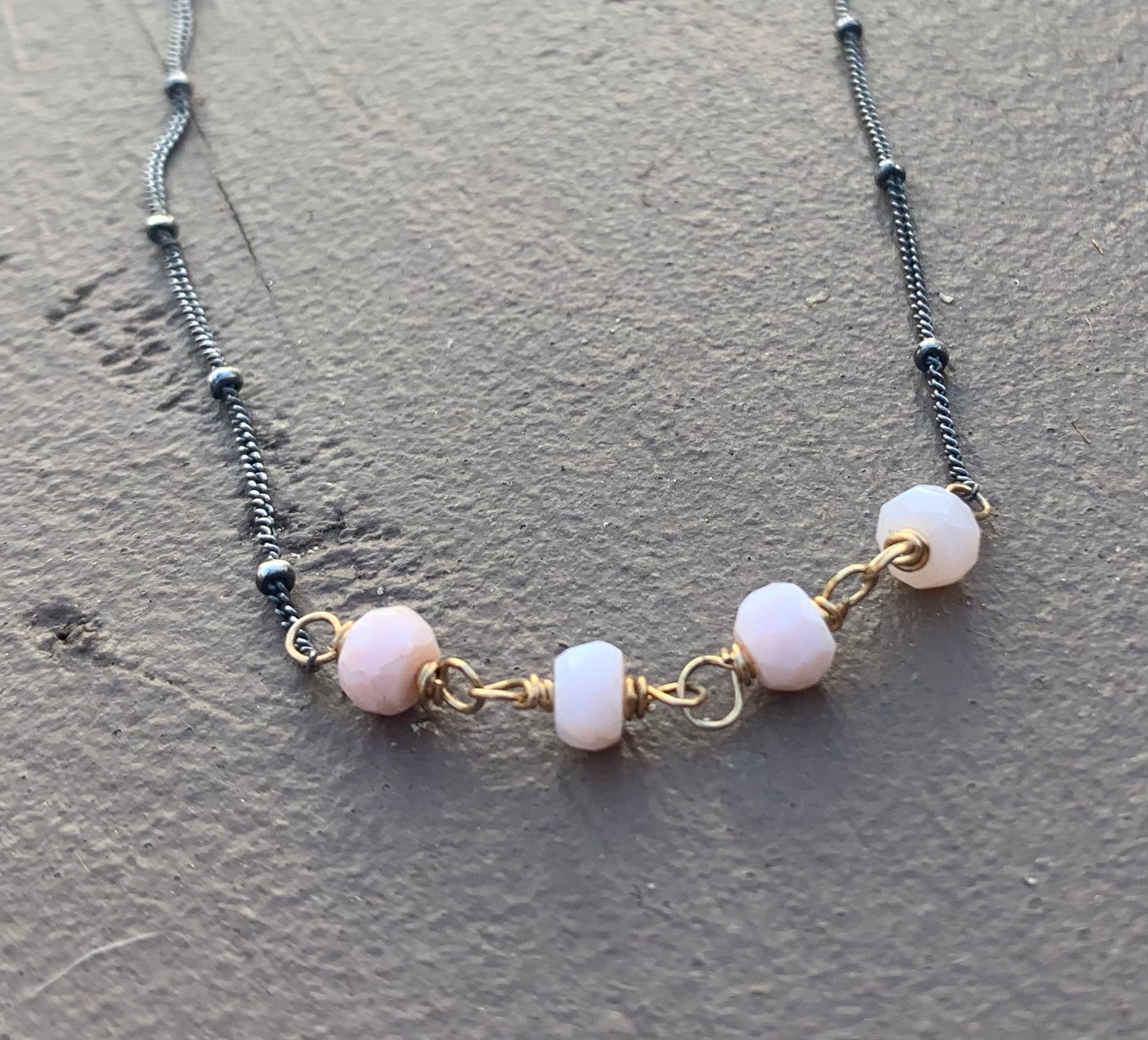STUDIO CLEAN OUT SPECIAL! Ready to ship - 18" Mixed Metal with Pink Opal! Pink opal is the birthstone of October!