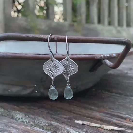 Muse Earrings - Oxidized fine and sterling silver. Moss Aquamarine. Handmade dangle earrings