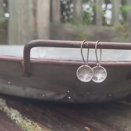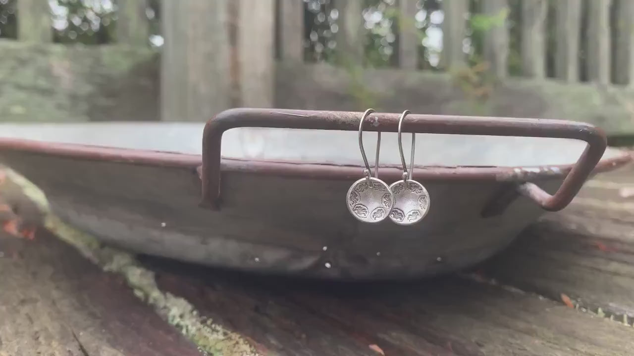 * ~10mm slightly domed round charms of recycled fine silver crafted & imprinted by hand by me. As I make each one entirely by hand sizes are approximate.