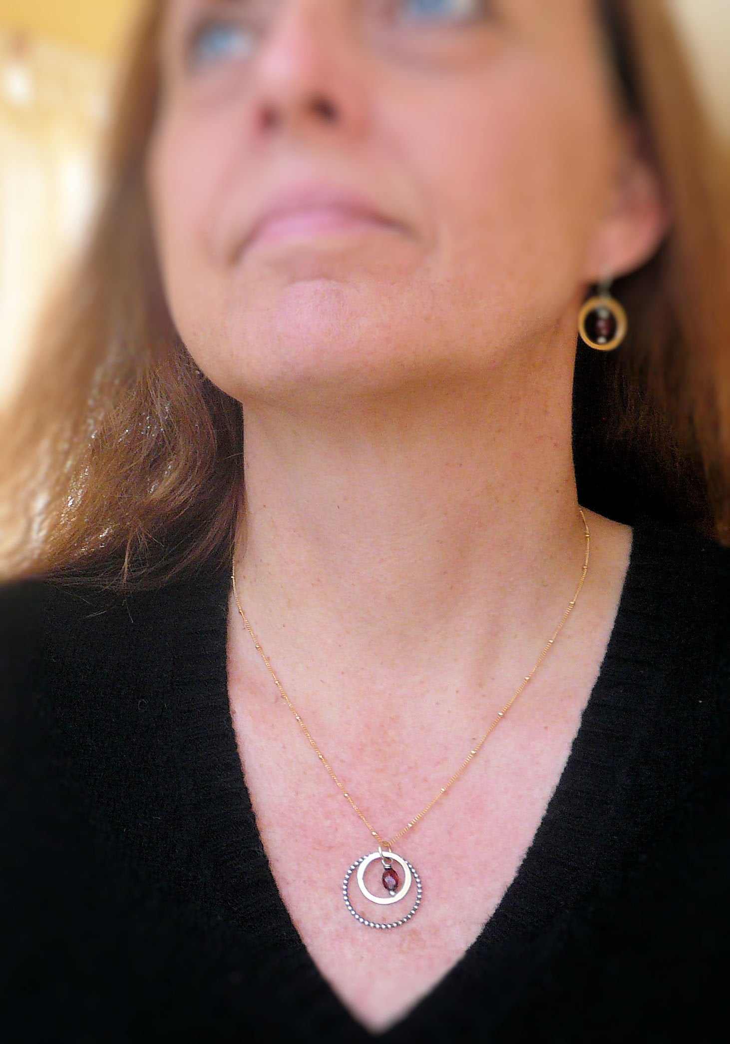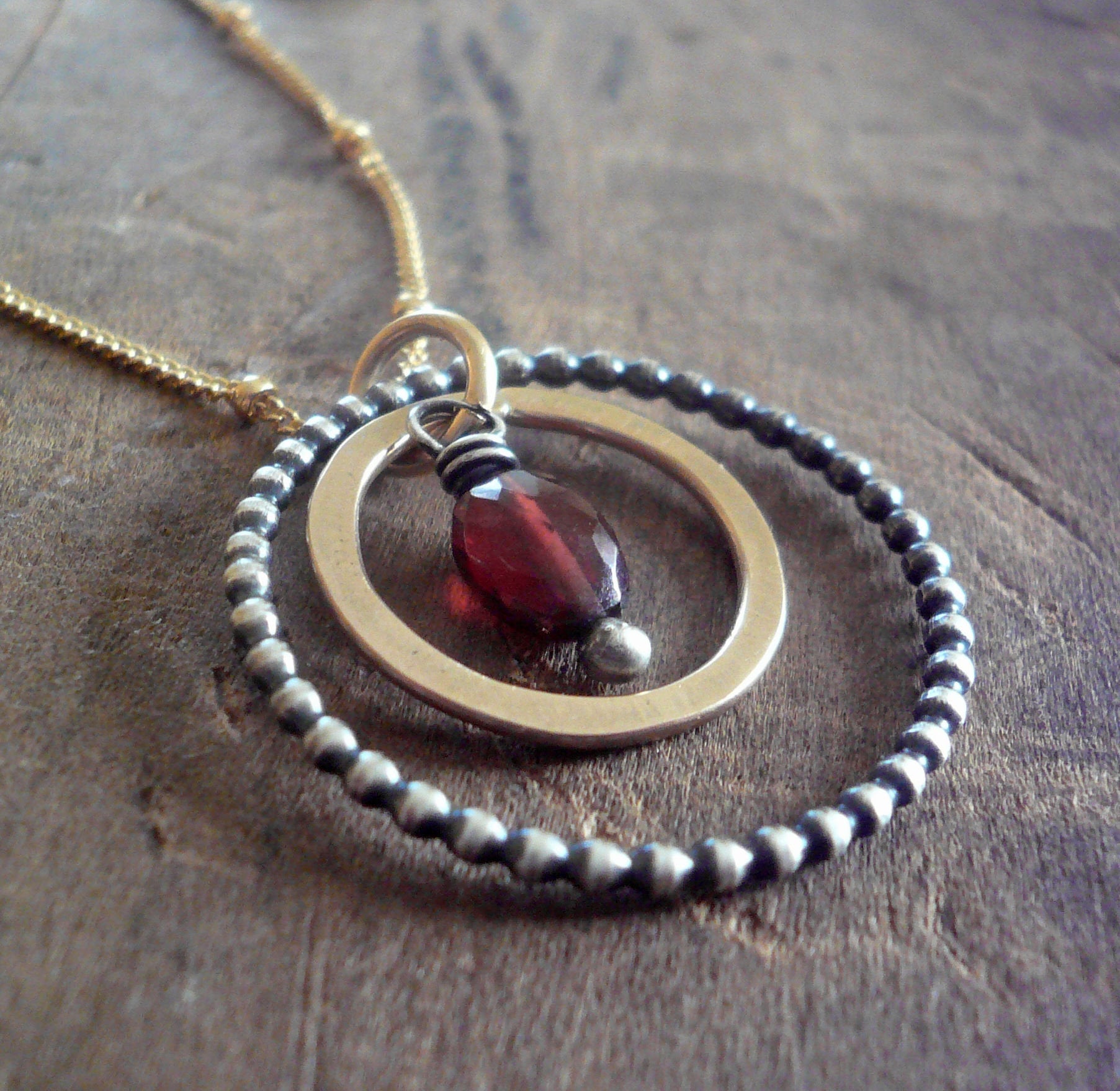 Rouge Collection Necklace - Garnet. Oxidized sterling silver and 14kt Goldfill. Handmade