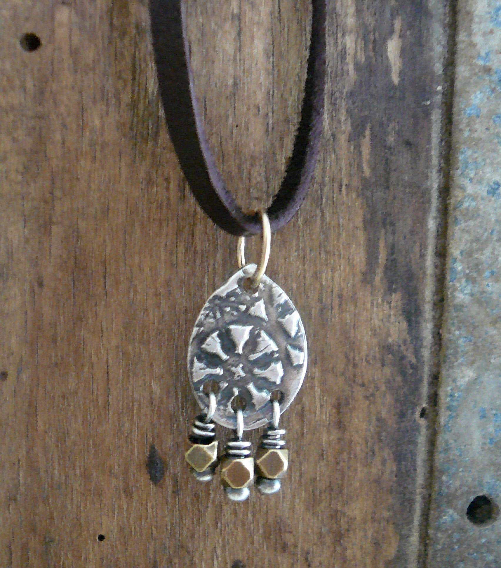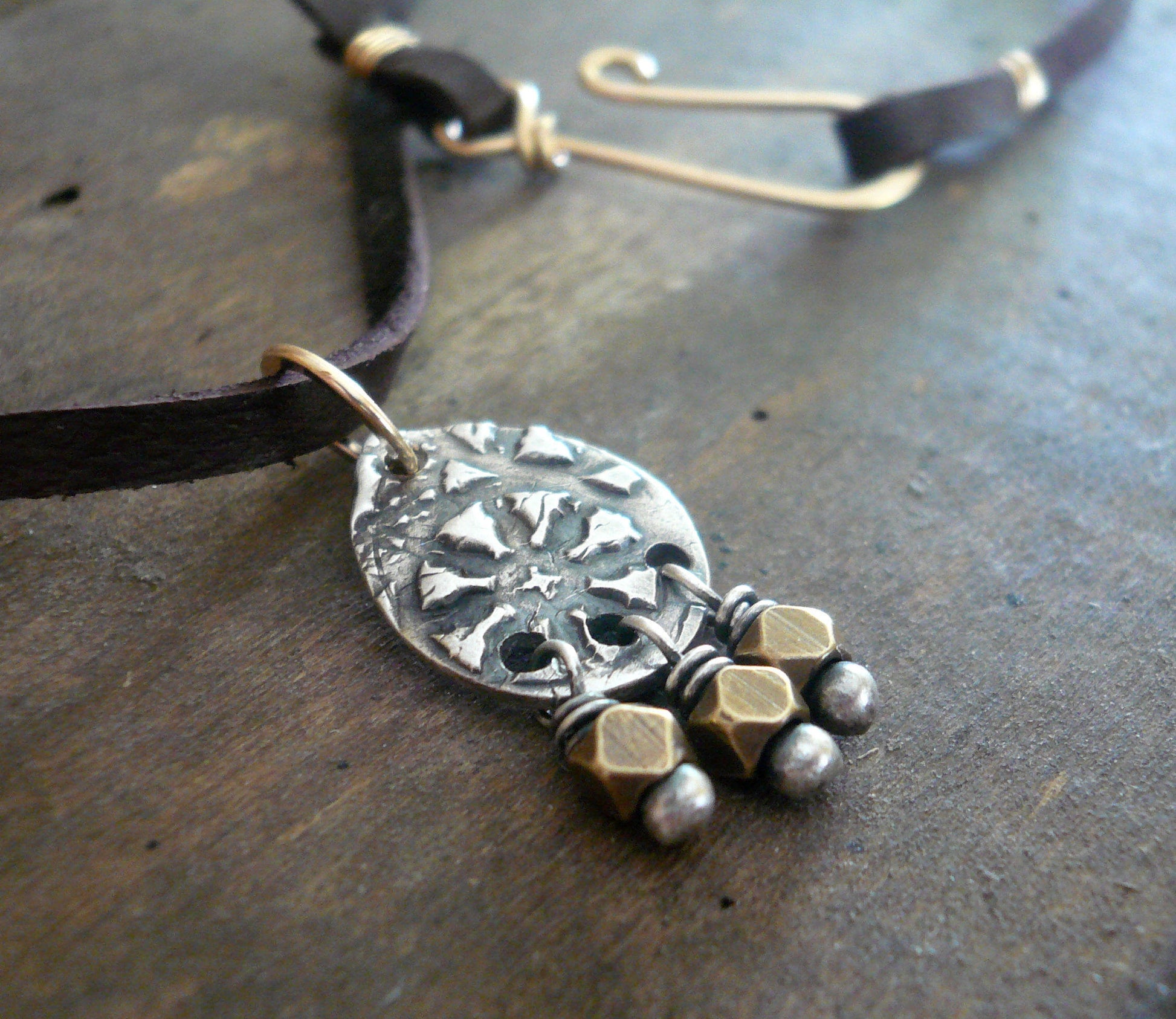 Soleil Collection Drops Necklace- Oxidized fine silver. Brass. 14kt Goldfill. Leather. Mixed Metal. Handmade