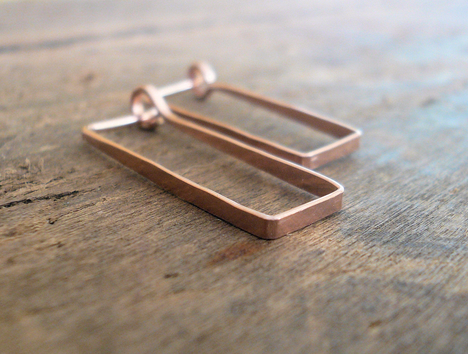 Svelte Hoops - Handmade. Hand forged. Choice of 3 sizes. 14kt Rose Goldfill Rectangular Hoop Earrings