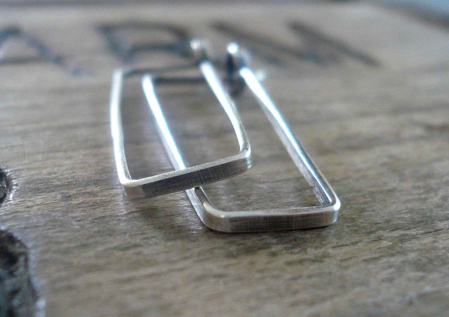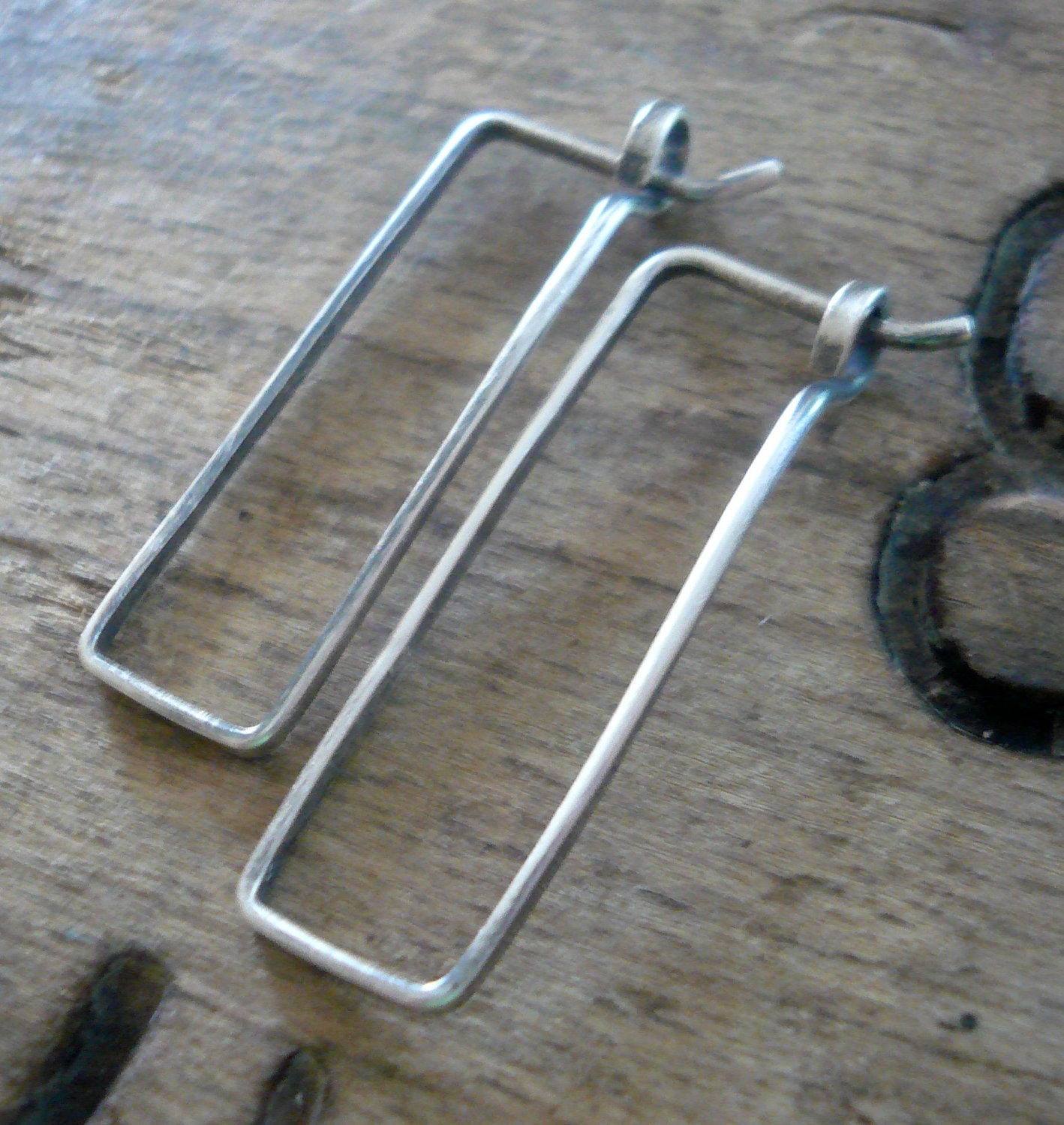 18 gauge sterling wire has been cut, filed, forged in different directions to add dimension & then formed into a long, lean rectangular shape.