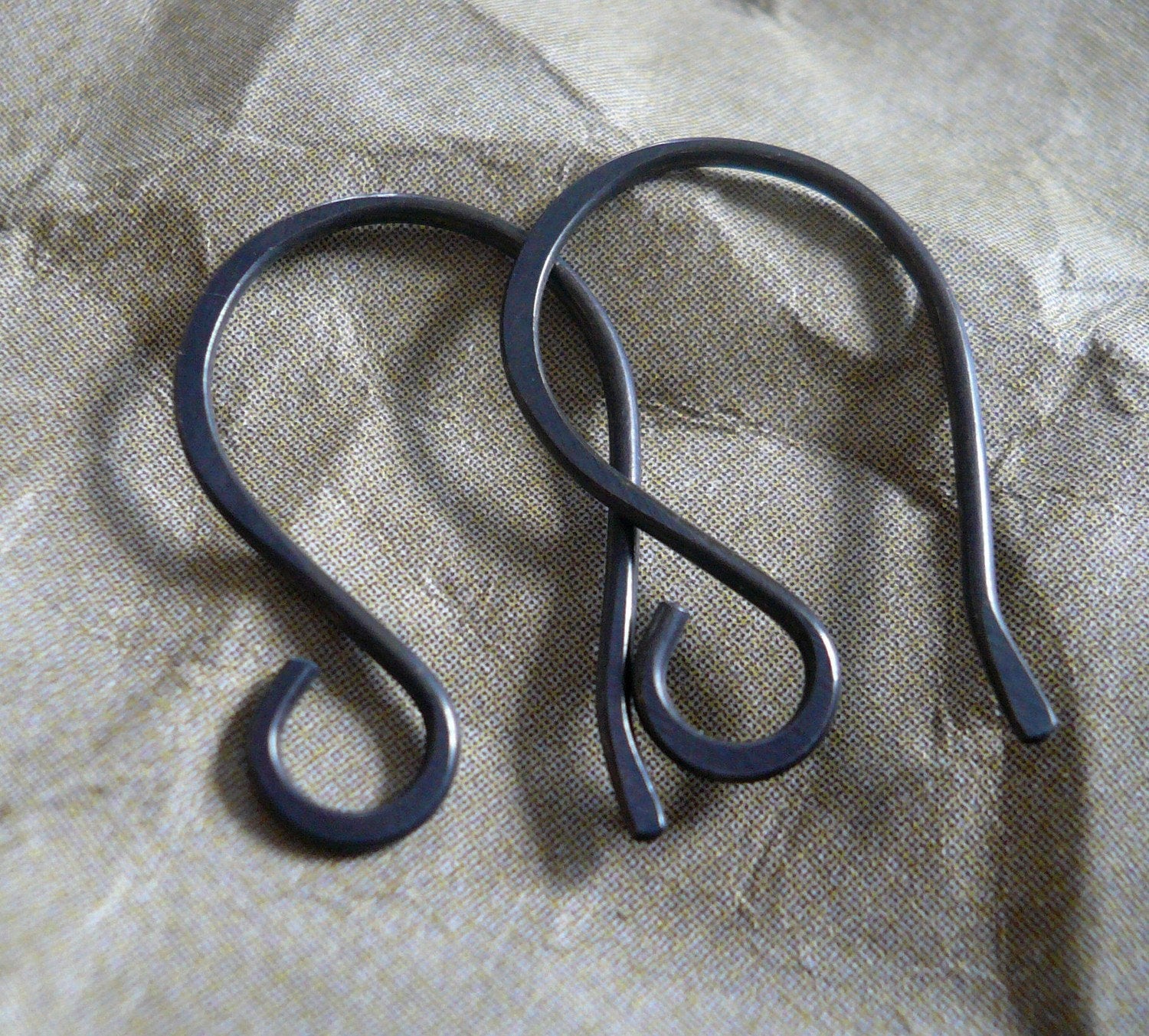 Description: Sterling silver (.925) hand formed earwires heavily oxidized/ available in oxidized and polished and shiny -shown in size reference photo- finishes in separate listings